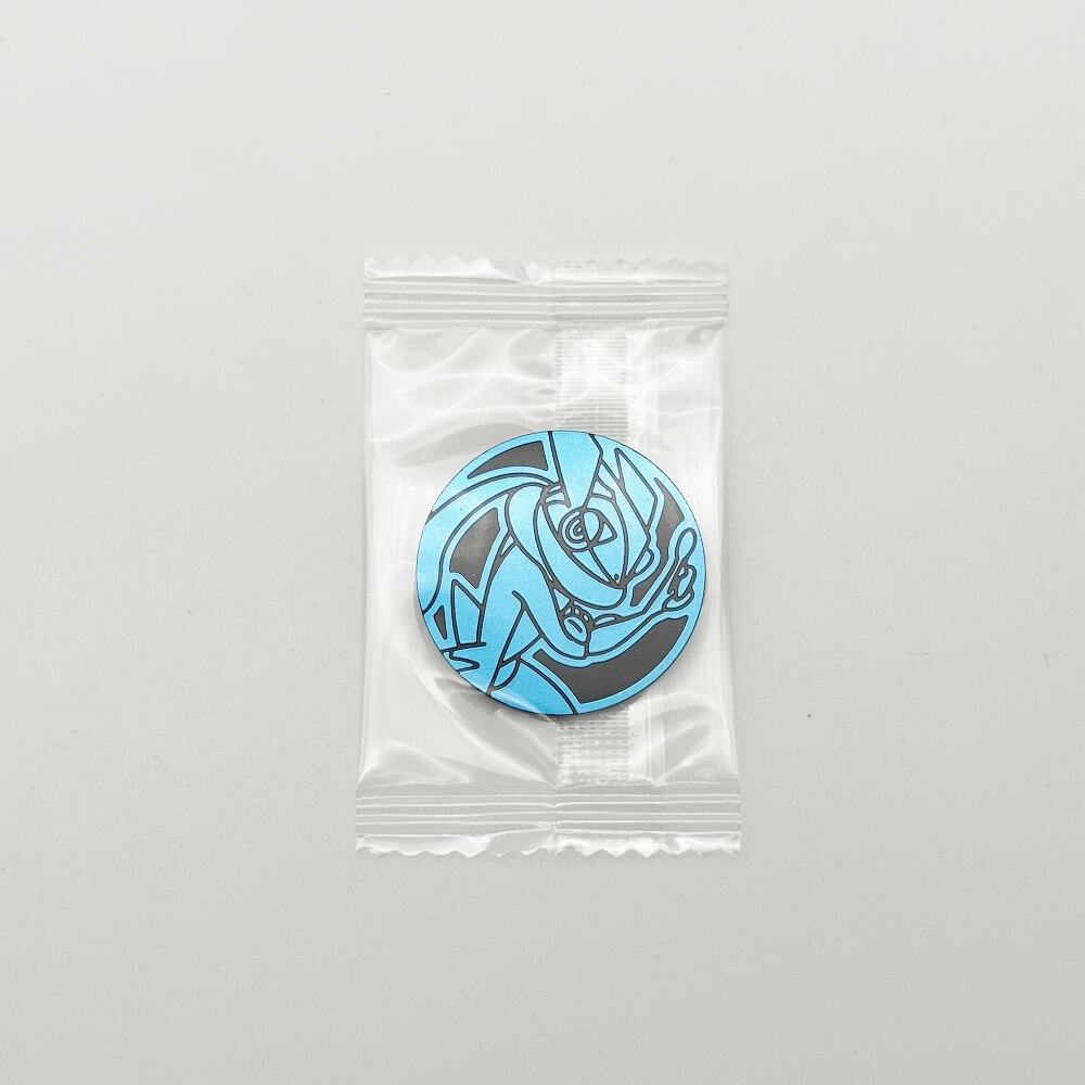 Both the Pokémon card and the coin are individually packaged.