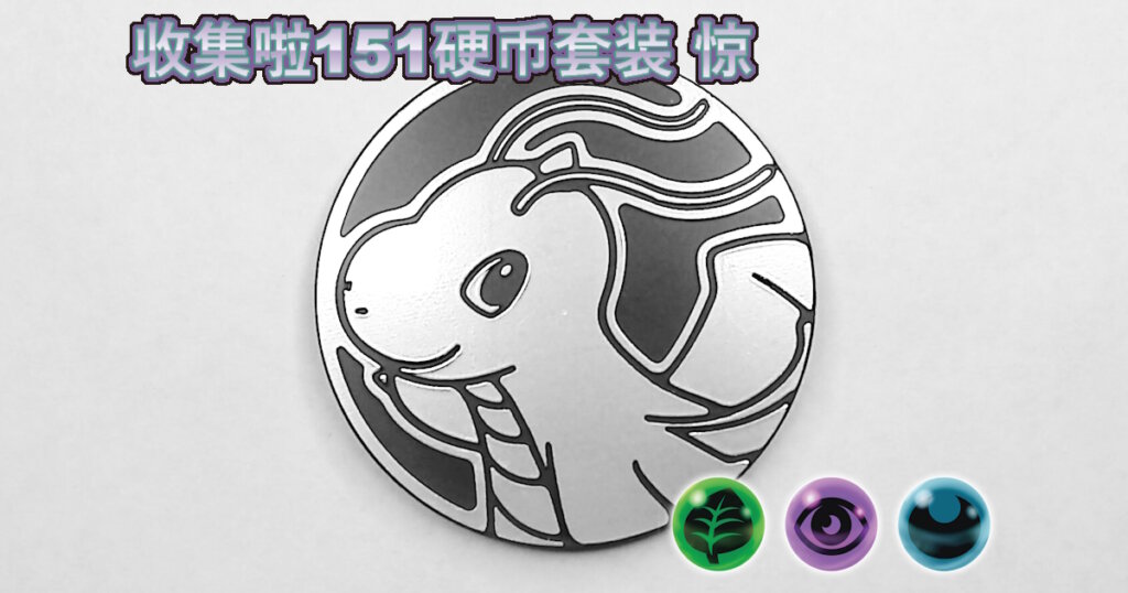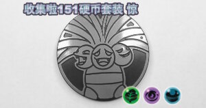 2025年7月18日に中国で発売された「集めよう!151コインセット 惊」に同梱され、グリーンノンホロ、パープルノンホロ、ライトブルーノンホロ、ゴールドスペクルホロの4種類があります。