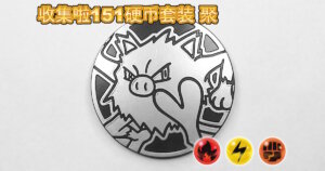 2025年10月17日に中国で発売された「集めよう!151コインセット 聚」に同梱され、レッドノンホロ、イエローノンホロ、オレンジノンホロ、ゴールドスペクルホロの4種類があります。