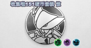 2025年7月18日に中国で発売された「集めよう!151コインセット 惊」に同梱され、グリーンノンホロ、パープルノンホロ、ライトブルーノンホロ、ゴールドスペクルホロの4種類があります。