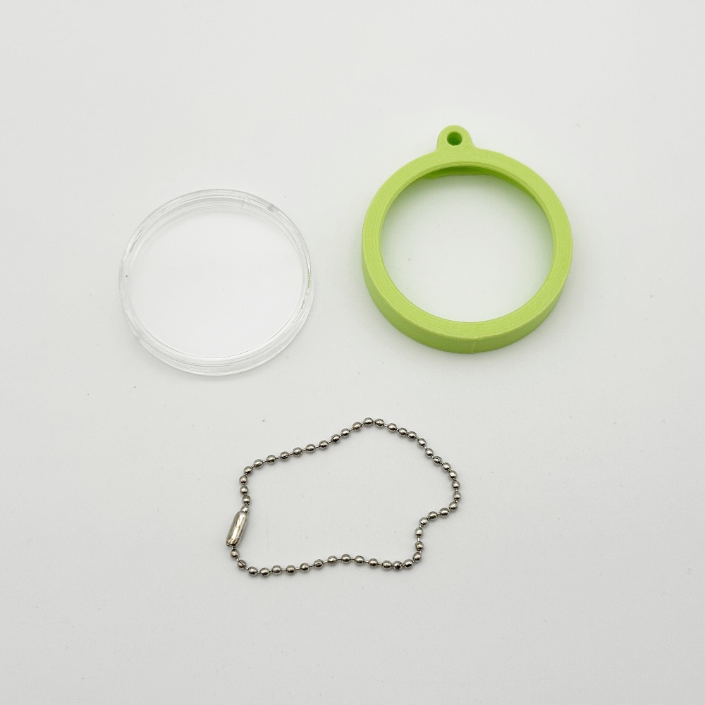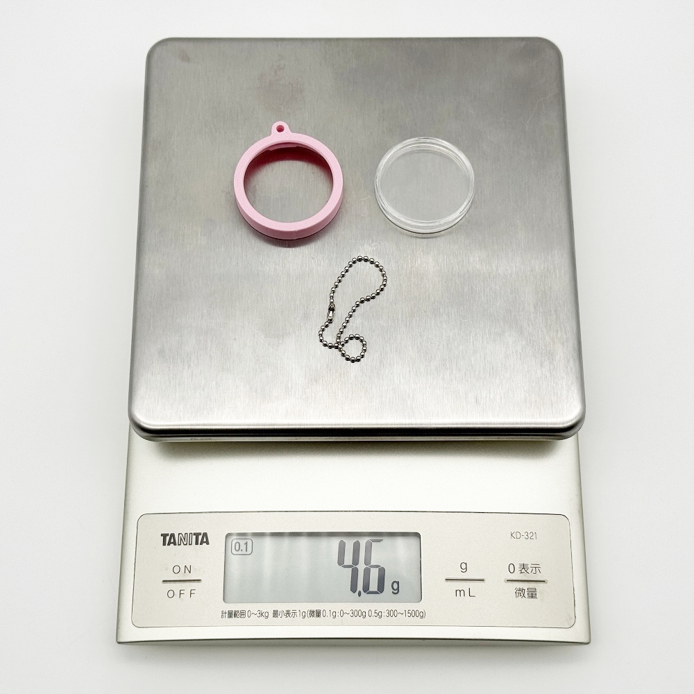 With a diameter of 37 mm and a thickness of 7 mm, it is compact and easy to carry as a keychain.