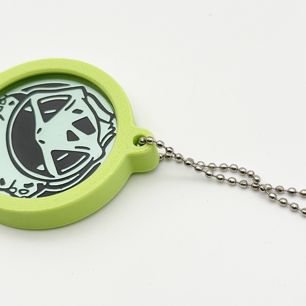 キーホルダー本体の表面および裏面は、それぞれこのようなデザインとなっております。