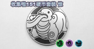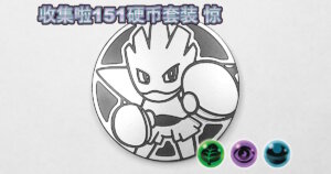 2025年7月18日に中国で発売された「集めよう!151コインセット 惊」に同梱され、グリーンノンホロ、パープルノンホロ、ライトブルーノンホロ、ゴールドスペクルホロの4種類があります。