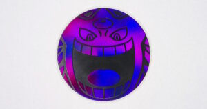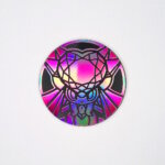 メガディアンシーを絵柄にしたジャンボサイズのピンクレインボーホロ仕様、黒裏面コイン。