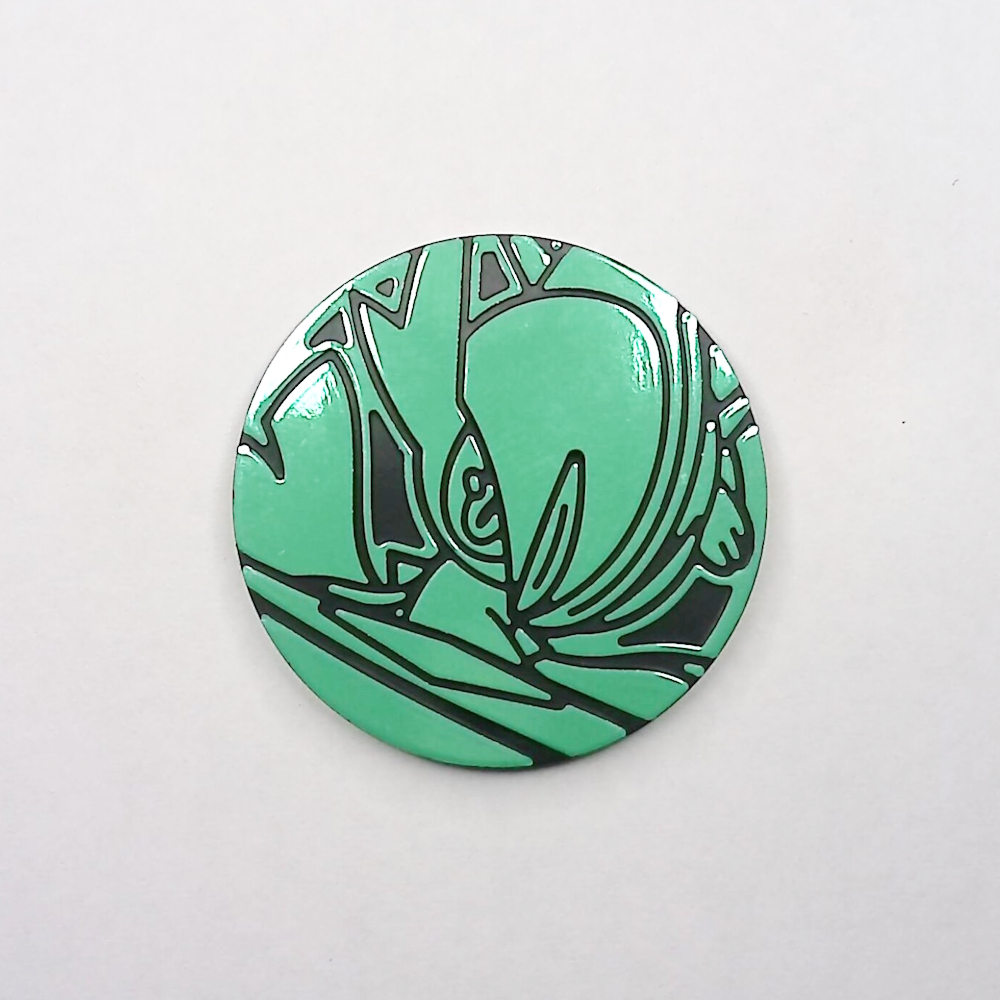 メガエルレイドを絵柄にしたレギュラーサイズのグリーンノンホロ仕様、黒裏コインが2026年1月23日発売の「ポケモンカードゲーム MEGA スペシャルカードセット メガエルレイドex」に同梱されました。