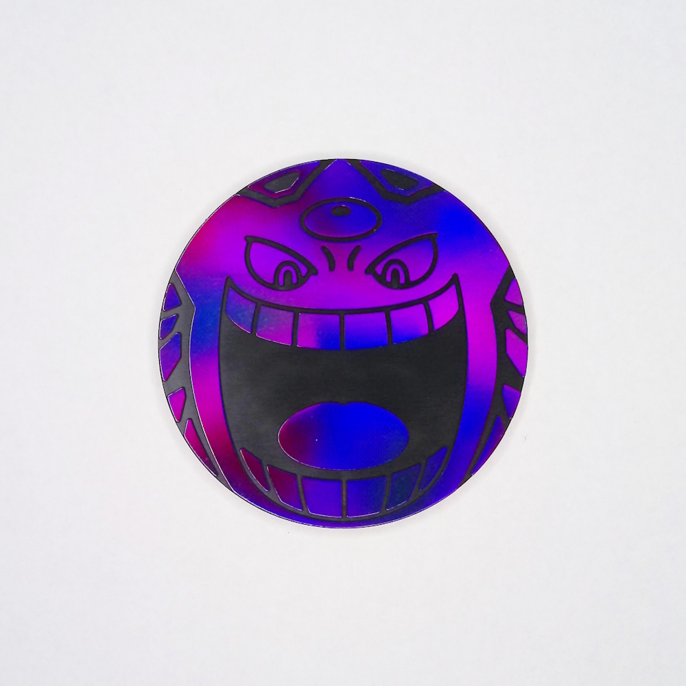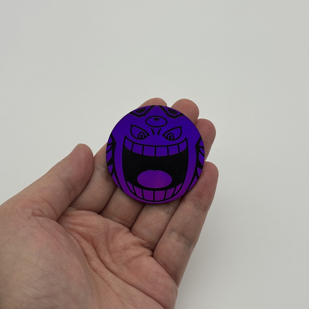 メガゲンガーを絵柄にしたジャンボサイズのパープルレインボーホロ仕様、黒裏面コイン。