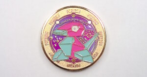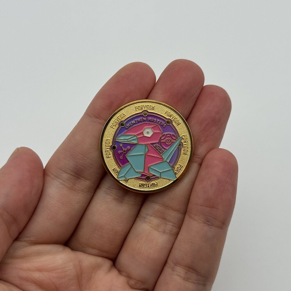 ポリゴンを絵柄にしたメタルコイン。