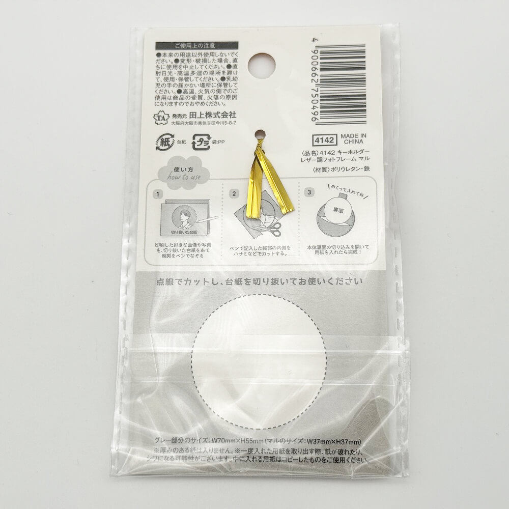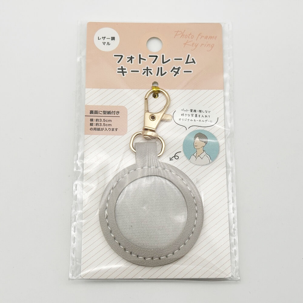 セリア キーホルダー レザー調フォトフレーム マル【Seria Leather-Style Photo Frame Keychain (Maru)】