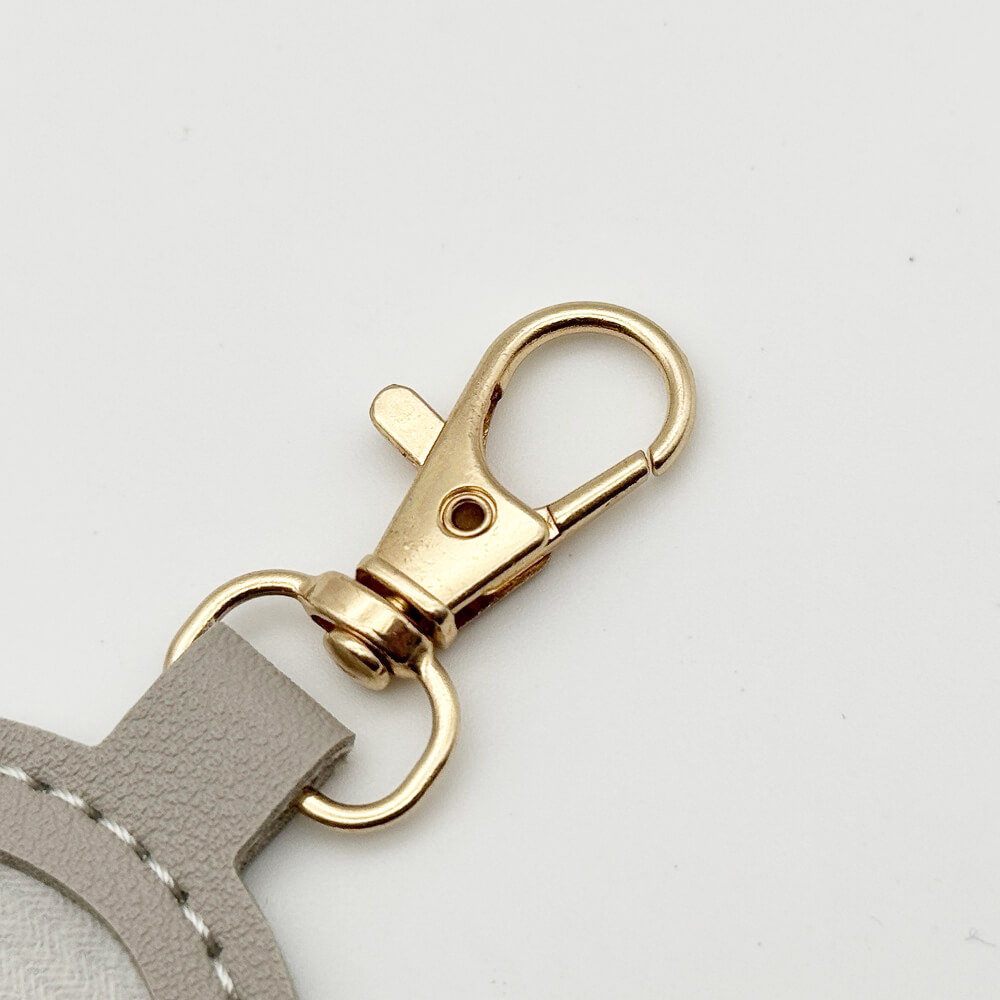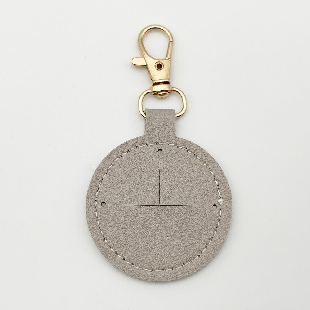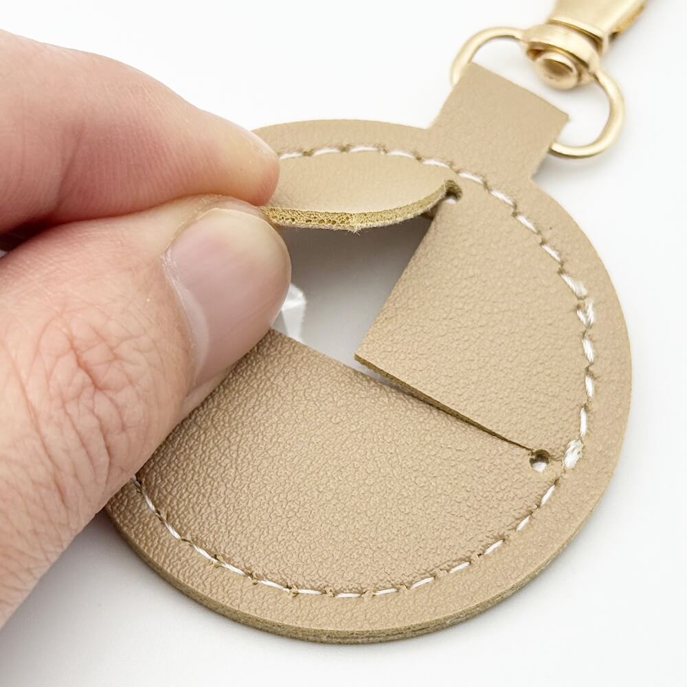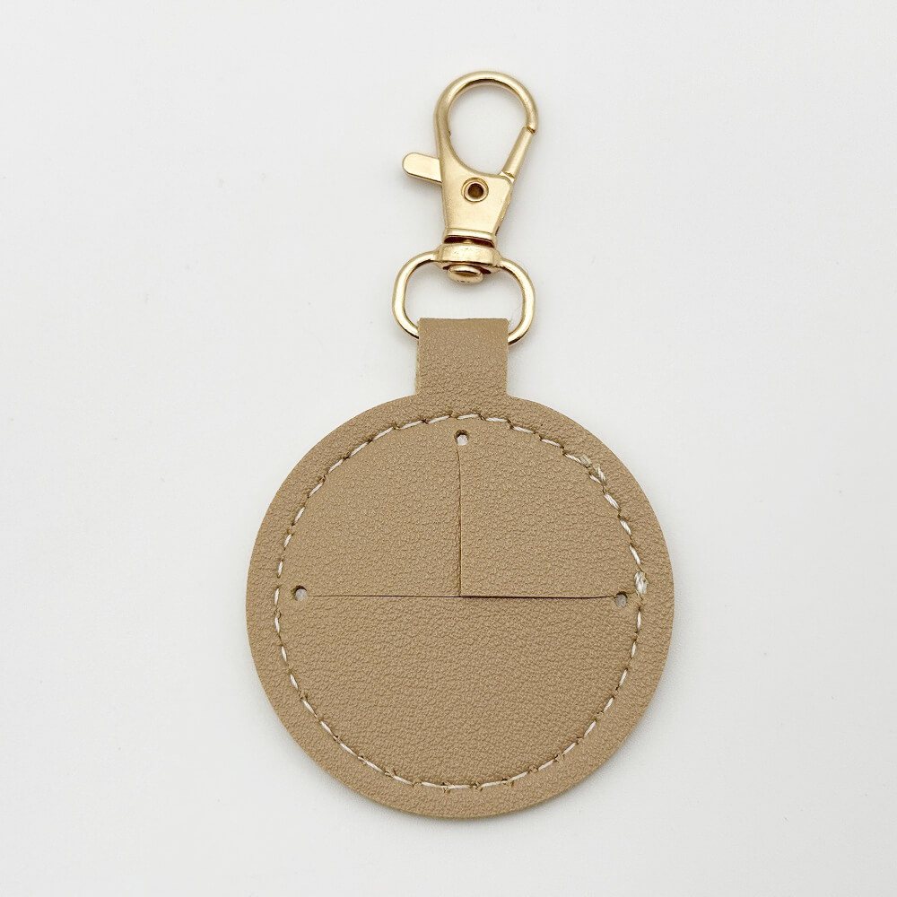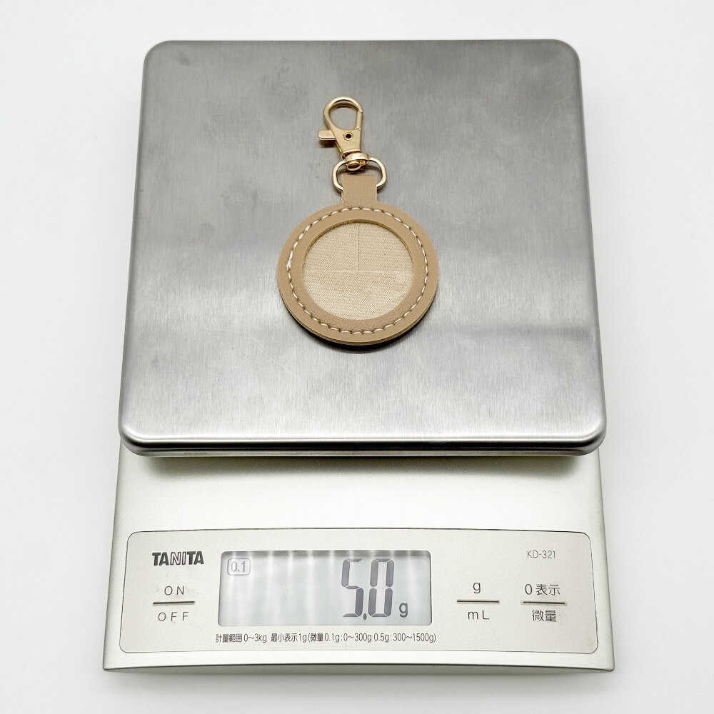 The “Seria Leather-Style Photo Frame Keychain (Maru)” is a keychain that allows you to insert a circularly cut photo or image and display it as a photo frame.