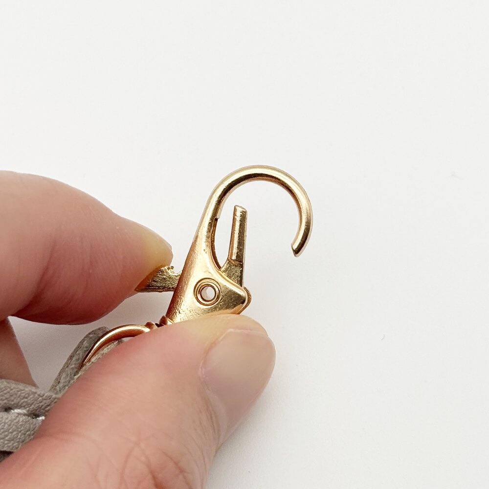 鉄製の金具部分にはレバーナスカンが採用されており、レバーを引いて簡単に開閉できます。