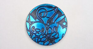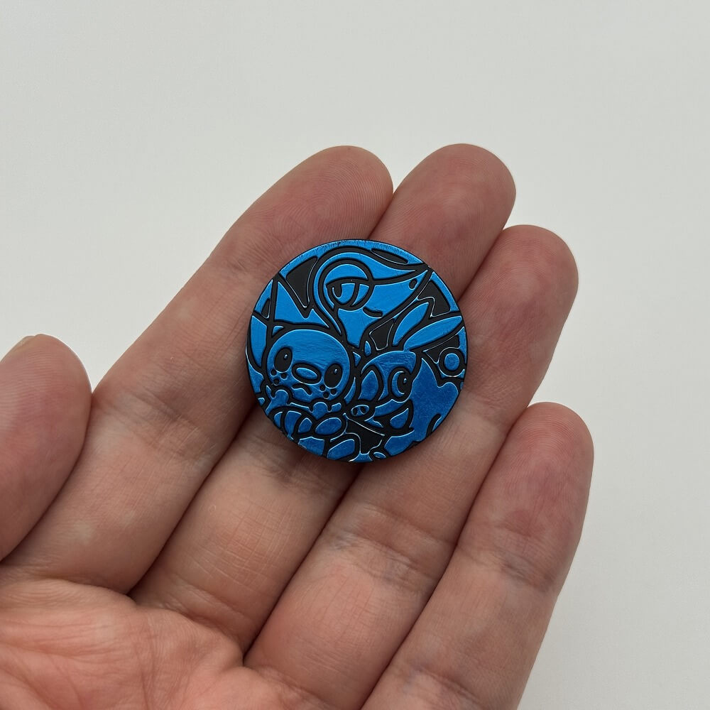 ツタージャとポカブとミジュマルを絵柄にしたブルーミラーホロ、黒裏面のコインが2011年5月3日発売の「Korean Evolution of Water Half Deck」に同梱されました。