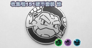 2025年7月18日に中国で発売された「集めよう!151コインセット 惊」に同梱され、グリーンノンホロ、パープルノンホロ、ライトブルーノンホロ、ゴールドスペクルホロの4種類があります。