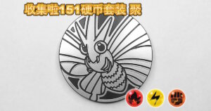 2025年10月17日に中国で発売された「集めよう!151コインセット 聚」に同梱され、レッドノンホロ、イエローノンホロ、オレンジノンホロ、ゴールドスペクルホロの4種類があります。