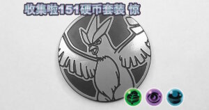 2025年7月18日に中国で発売された「集めよう!151コインセット 惊」に同梱され、グリーンノンホロ、パープルノンホロ、ライトブルーノンホロ、ゴールドスペクルホロの4種類があります。